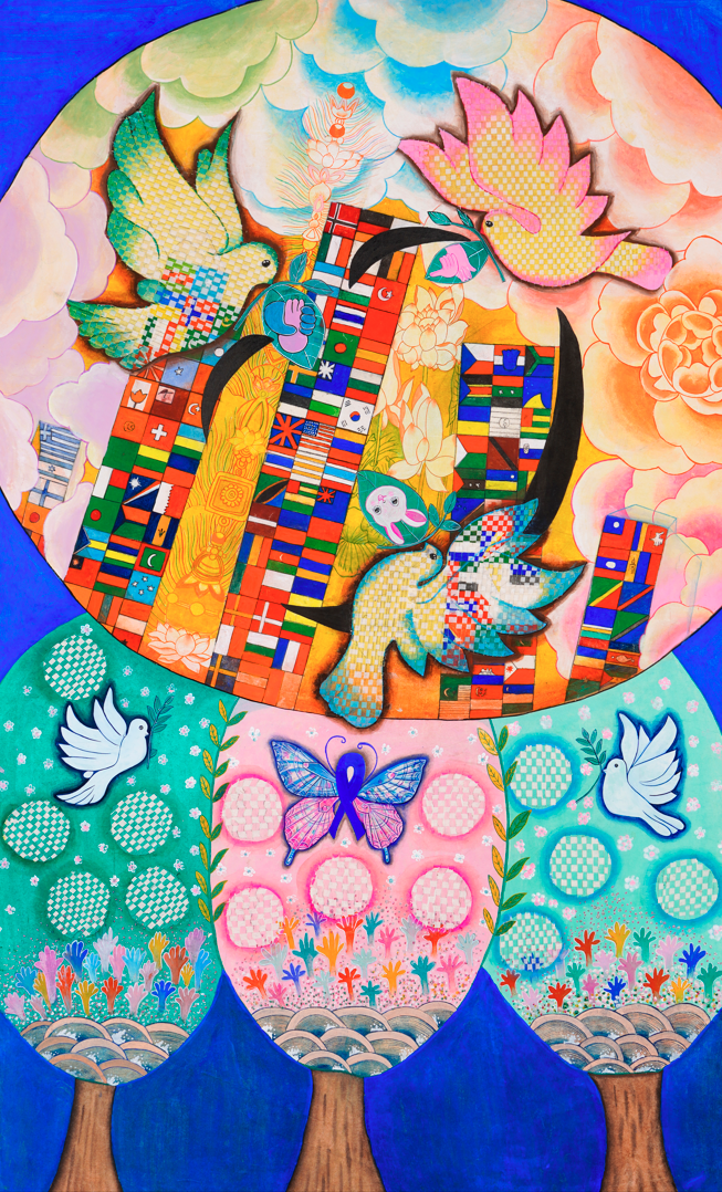 <평화> 순지에 분채, 봉채, 먹, 140×70㎝